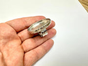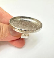 Shiny Silver Ring Blank Setting Cabochon Base inlay Ring Hammered Mounting Adjustable Ring Bezel (40x30mm blank ) Gold Plated Metal G36255