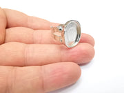 Shiny Silver Oval Ring Setting, Cabochon Blank, Resin Bezel, Ring Mounting, Epoxy Frame Base, Adjustable Rhodium Plated Brass 18x15mm G35644