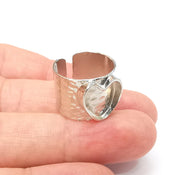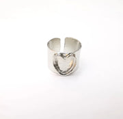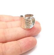 Shiny Silver Heart Ring Setting, Cabochon Blank, Resin Bezel, Ring Mounting, Epoxy Frame Base, Adjustable Rhodium Plated Brass 10mm G35814