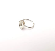Shiny Silver Oval Ring Setting, Cabochon Blank, Resin Bezel, Ring Mounting, Epoxy Frame Base, Adjustable Rhodium Plated Brass 13x10mm G35819