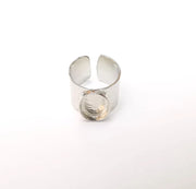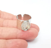 Shiny Silver Oval Ring Setting, Cabochon Blank, Resin Bezel, Ring Mounting, Epoxy Frame Base, Adjustable Rhodium Plated Brass 14x10mm G35835
