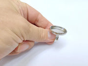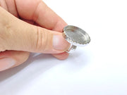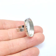 Shiny Silver Oval Ring Setting, Cabochon Blank, Resin Bezel, Ring Mounting, Epoxy Frame Base, Adjustable Rhodium Plated Brass 25x18mm G36409