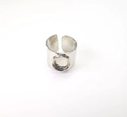 Shiny Silver Oval Ring Setting, Cabochon Blank, Resin Bezel, Ring Mounting, Epoxy Frame Base, Adjustable Rhodium Plated Brass 10mm G35652