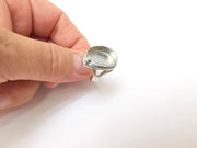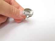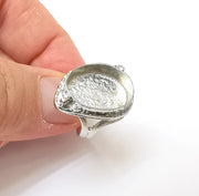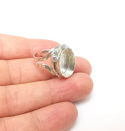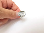 Shiny Silver Ring Setting, Cabochon Blank, Resin Bezel, Ring Mounting, Epoxy Frame Base, Adjustable Rhodium Plated Brass 18x13mm G35812