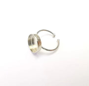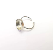 Shiny Silver Round Ring Setting, Cabochon Blank, Resin Bezel, Ring Mounting, Epoxy Frame Base, Adjustable Rhodium Plated Brass 14mm G35751