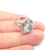 Shiny Silver Round Ring Setting, Cabochon Blank, Resin Bezel, Ring Mounting, Epoxy Frame Base, Adjustable Rhodium Plated Brass 10mm G35805