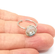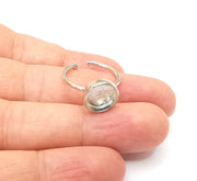 Shiny Silver Round Ring Setting, Cabochon Blank, Resin Bezel, Ring Mounting, Epoxy Frame Base, Adjustable Rhodium Plated Brass 10mm G35673