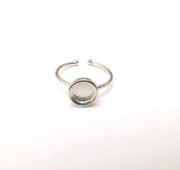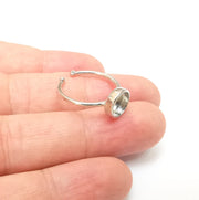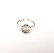 Shiny Silver Round Ring Setting, Cabochon Blank, Resin Bezel, Ring Mounting, Epoxy Frame Base, Adjustable Rhodium Plated Brass 8mm G35842