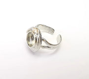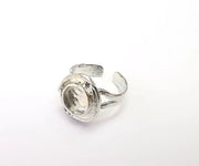 Shiny Silver Round Ring Setting, Cabochon Blank, Resin Bezel, Ring Mounting, Epoxy Frame Base, Adjustable Rhodium Plated Brass 10mm G35735