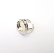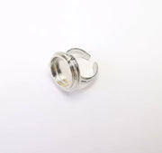 Shiny Silver Round Ring Setting, Cabochon Blank, Resin Bezel, Ring Mounting, Epoxy Frame Base, Adjustable Rhodium Plated Brass 15mm G35745