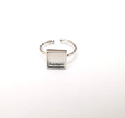 Shiny Silver Square Ring Setting, Cabochon Blank, Resin Bezel, Ring Mounting, Epoxy Frame Base, Adjustable Rhodium Plated Brass 8mm G35840