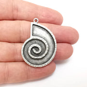 Silver Ammonite Swirl Charms Blank, Charms Base, Cabochon Bezel, inlay Mounting, Resin Necklace, Antique Silver plated 43x31mm G36317