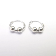 Solid Sterling Silver Earring Hoop Wire with two Ball Bead, Piercing, 925 Silver Earring Hoop Findings (12mm) 1 pair G30406