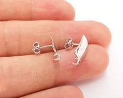 Sterling Silver Earring Posts 2 Pcs (1 pair) 925 Silver Earring Needle with Loop Findings (14x8mm) G30156