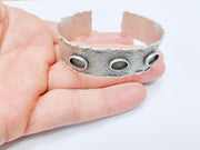 This antique silver plated cuff bracelet features a beautiful textured design with multiple bezel settings, allowing for endless customization possibilities. The bezels are perfect for adding resin, cabochons, gemstones, or mini artwork to create a truly unique piece. Its adjustable size ensures a comfortable fit, making it suitable for various wrist sizes. Whether you're crafting a personalized accessory or a special gift, this bracelet base offers both versatility and elegance. Handmade with high-quality materials, it provides durability and a timeless aesthetic for your DIY jewelry projects.