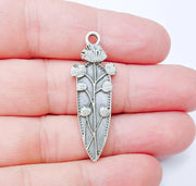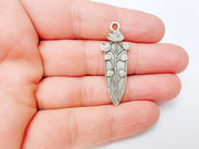 Thistle Pendant, Botanical Flower Charm for Necklace, Rustic Boho Jewelry Supply, Nature Jewelry Part, Antique Silver Plated 42x15mm G37223