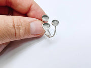 This triple bezel adjustable ring base is crafted from solid brass and finished with antique silver plating, offering a sturdy and elegant foundation for your handmade jewelry. Each bezel measures 10mm in diameter perfect for filling with resin, cabochons, crystals, or miniature artwork. A great choice for professional jewelry makers and hobbyists alike.